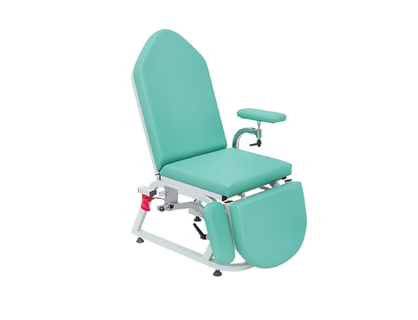 Features a hydraulic mechanism with synchronized backrest and footrest movement.