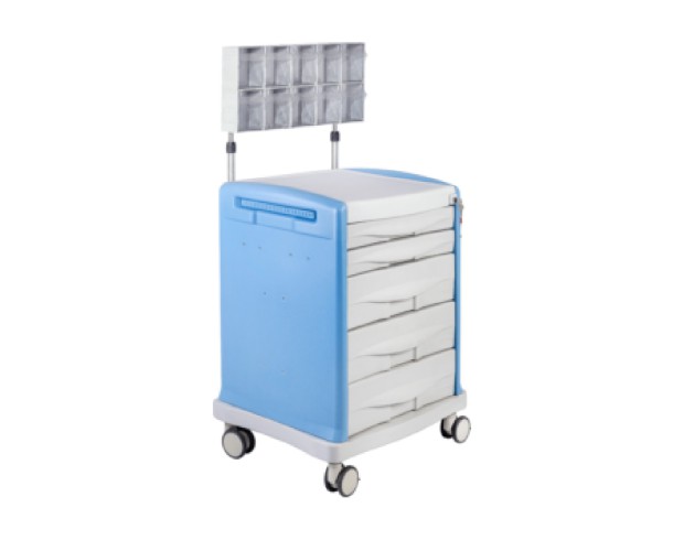 Ergonomic Design The trolley is equipped with 3 small, 1 medium, and 1 large drawer for placing medical materials.