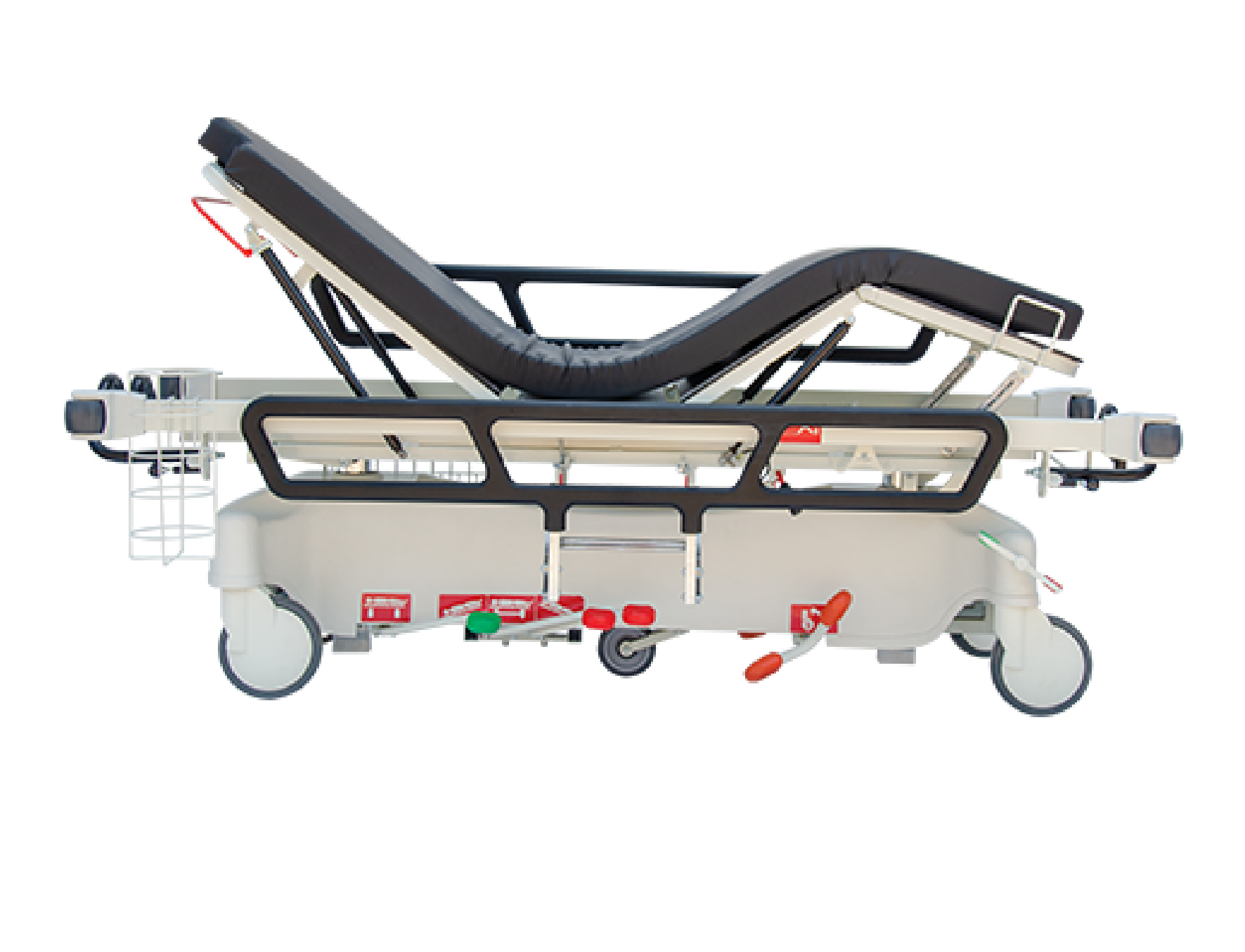 Height adjustment, Trendelenburg and reverse Trendelenburg by hydraulic pedals at both sides.