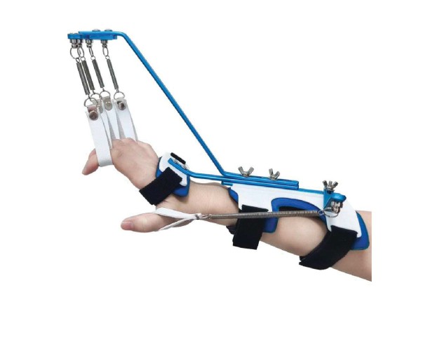 Made of thermoplastic covered by terry fabric from the inside.Pulls up the fingers and let them move a bit to help training them